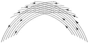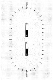 Полярное сияние представляет собой подобный световой эффект. Как было описано ранее, мы находим нисходящие вихревые потоки на полюсах земли, так же как и в случае с магнитом. В зоне взаимопроникновения этих восходящих и нисходящих вихревых потоков генерируются накопления, которые вызывают развитие тепла и света и таким образом порождают ленто-, полосо - или лучеобразное свечение верхних воздушных слоёв, в зависимости от интенсивности накоплений (рис. 52). Под большинством разнообразных форм северного сияния обычно наблюдается аркообразная, неискаженная винтовая или вихревая нить нисходящих и/или восходящих вихревых потоков. (Нетрудно доказать это явление в эксперименте, позволяя зонам накопления магнитного бруска затронуть светочувствительные пластины в почти безвоздушном сосуде в течение длительного периода времени.)