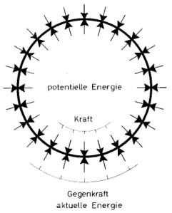 Ранее мы восприняли, что самая крошечная, неделимая частица вещества - так называемый энергетический шар - является только объемом энергии, ядро которого имеет определённую степень холода и оболочка которого окружена значительно более высокой температурой. Свойство электричества сжиматься при холоде и расширяться при высокой температуре вызвало к существованию динамическую зону равновесия энергетического шара. Таким образом, ядро энергетического шара представляет покоящуюся, потенциальную энергию. Если зона равновесия энергетического шара нарушается внешним повышением температуры, зона равновесия прорывается в направлении источника нарушения, то есть потенциальное ядерное электричество или энергия в её первичном физическом состоянии расширяется в результате этого одностороннего нагревания и истекает с огромной силой и скоростью, толкая энергетический шар в противоположном направлении благодаря реактивной силе. В основном, луч света – это не что иное, как первобытный пример ракеты, и в то же время переход вещества или возвращение к его первичному физическому состоянию. Скорость такой ракеты из энергетического шара зависит от произведения плотности, умноженной на напряжение потенциального ядерного электричества. Поскольку энергетический шар почти невесом, сила, используемая для его ускорения, очень низка. Известная высокая скорость приблизительно в 300,000 км/сек грубо соответствует расширению потенциальной энергии. Эта загадка луча света будет теперь объяснена с помощью очень конкретных примеров: